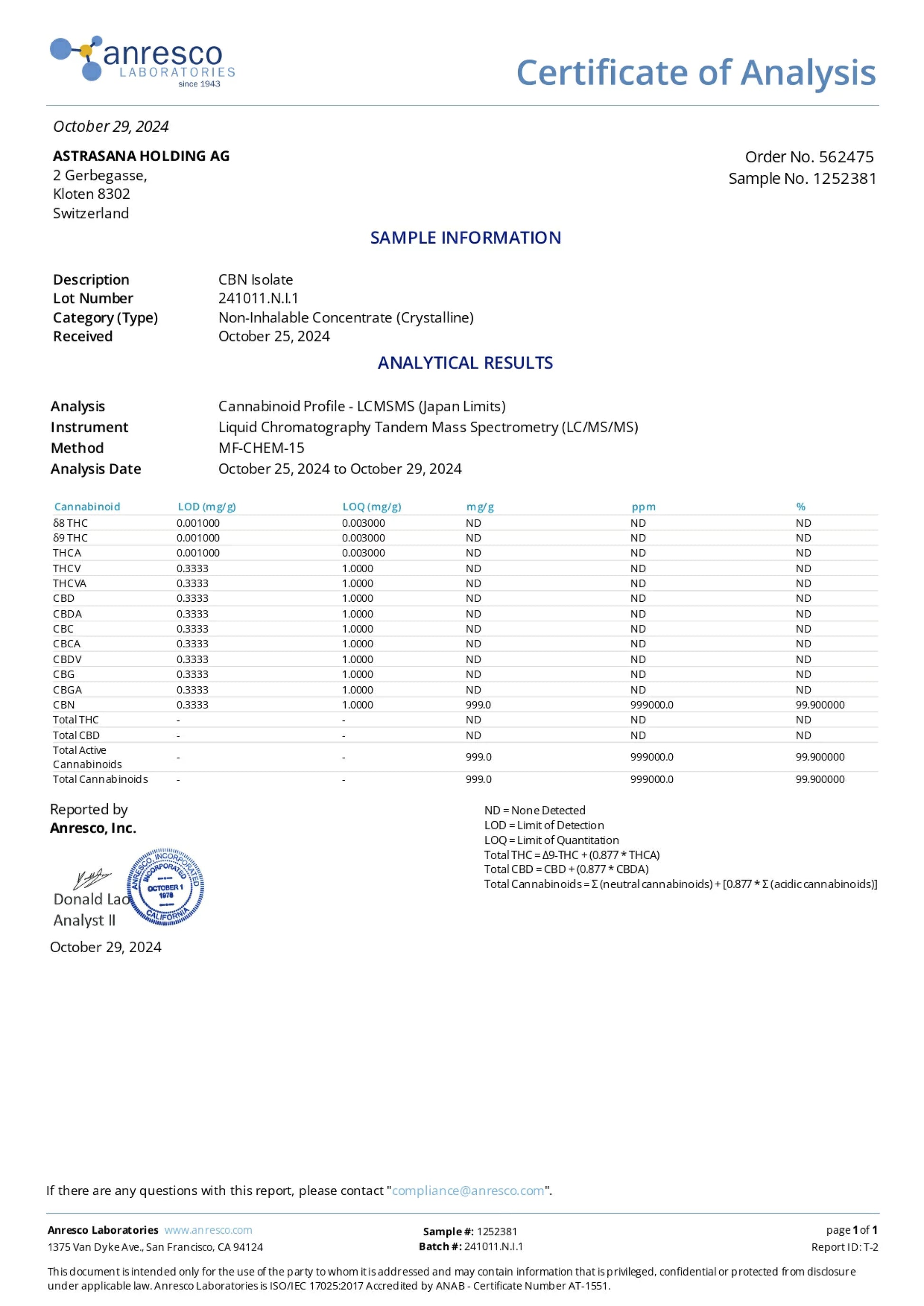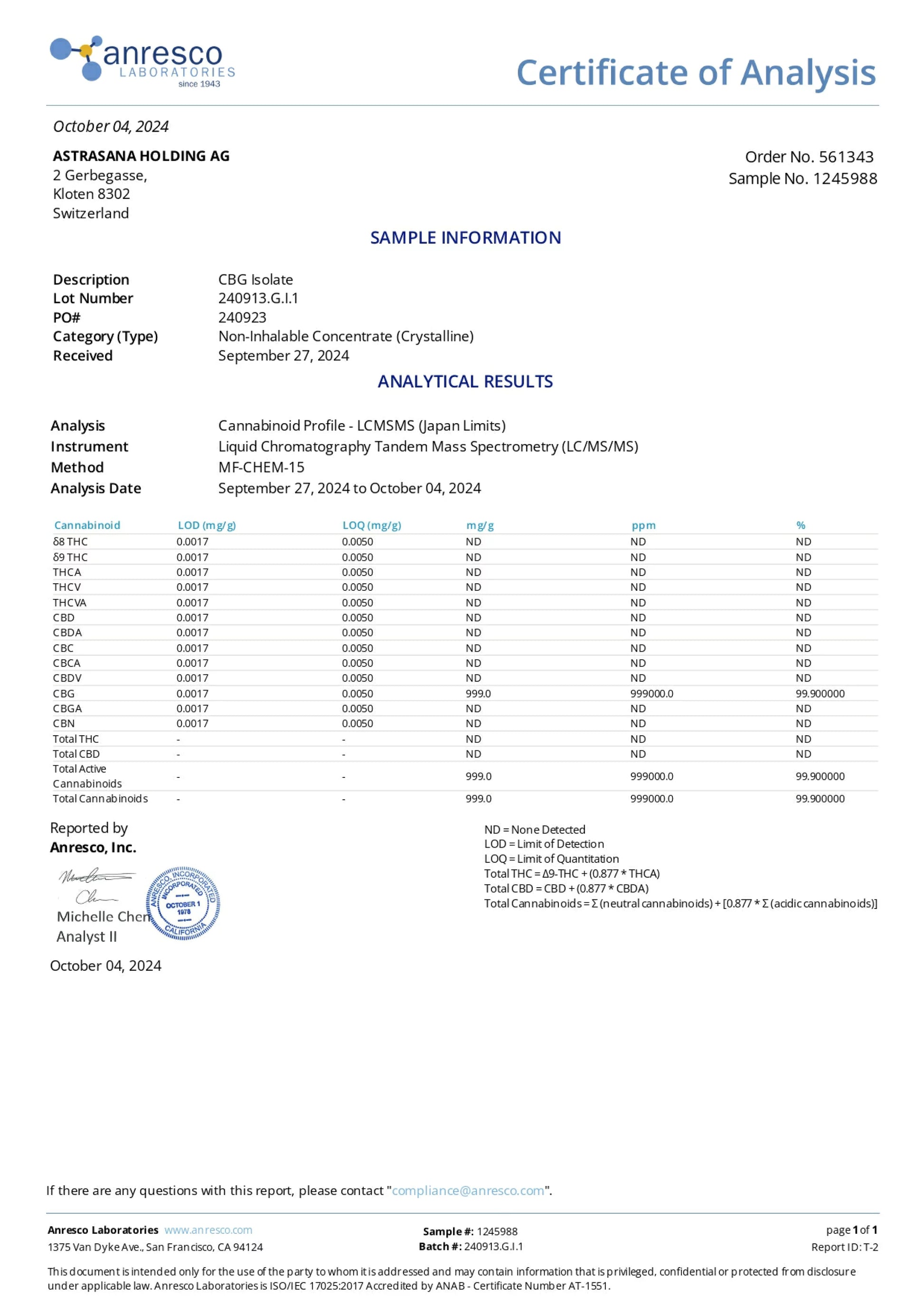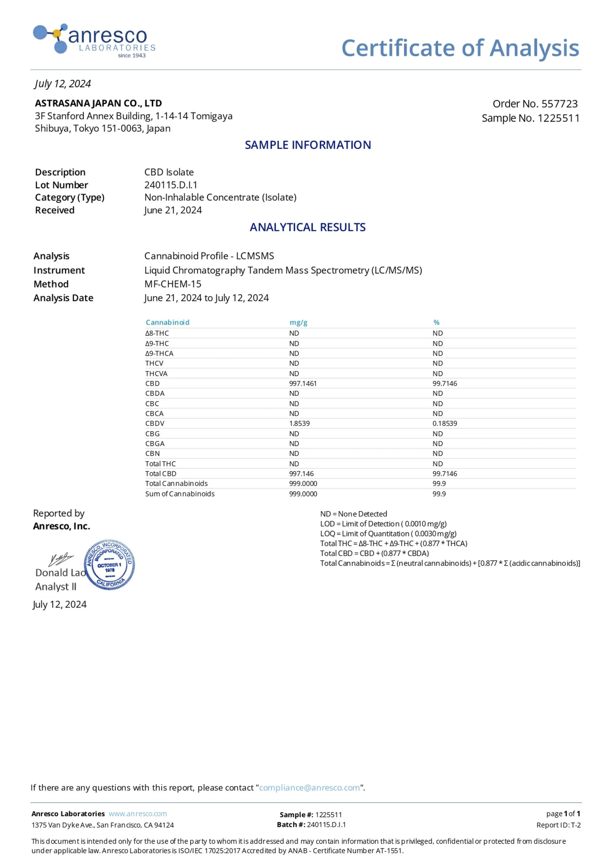 2024年12月12日施行の大麻取締法改正に伴うTHC残留限度値をクリア。