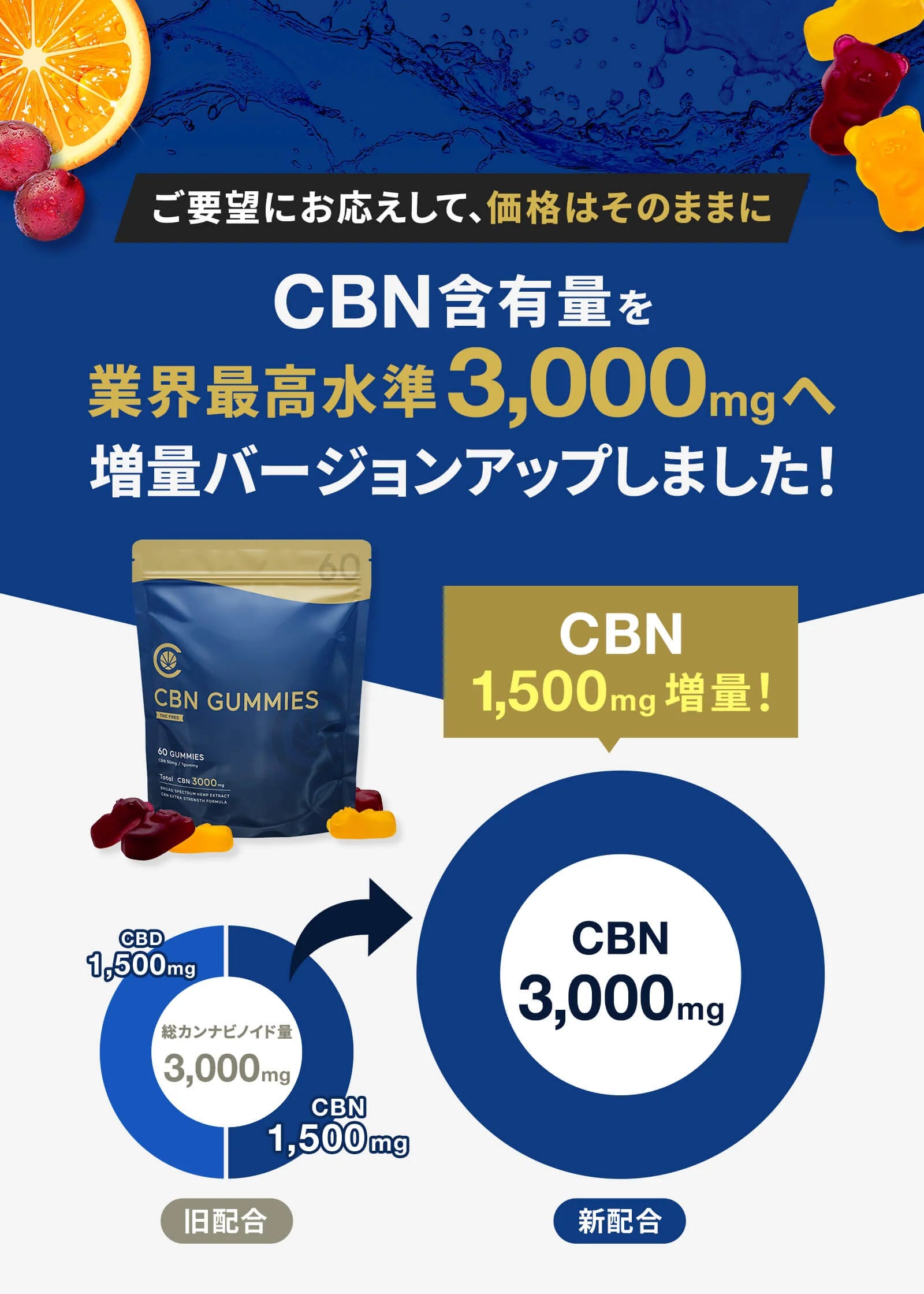 内容量・CBN/CBD含有量 240g / CBN含有量3000mg 1粒 50mg