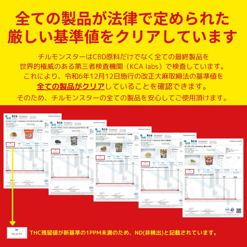 モンスターグミの特徴は、CBN(カンナビノール)成分にあります。CBNは成熟した麻の茎から抽出される成分で、抗不安効果やリラックス効果、睡眠の質向上など様々な効果が期待されています。モンスターグミは、CBNの力を最大限に発揮させるために、CBNを500mg含んでいます。