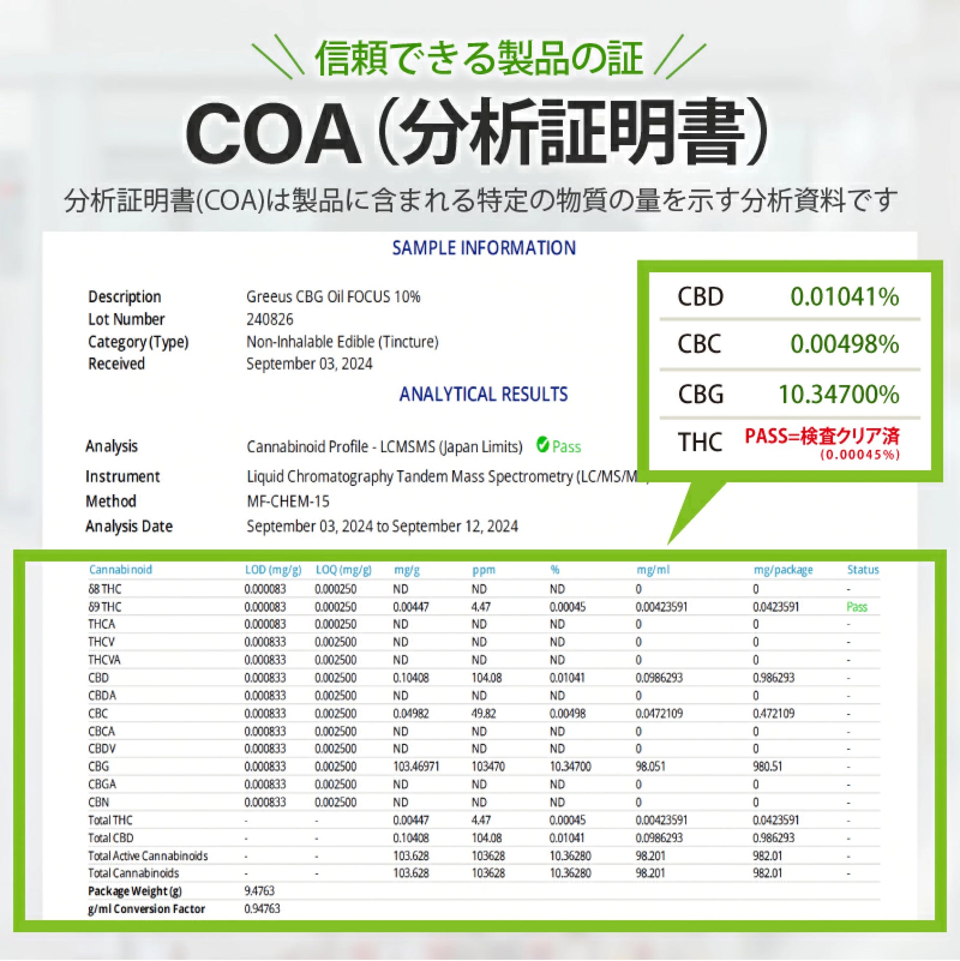 スイス国認定ヘンプのアイソレートCBGが配合されています。