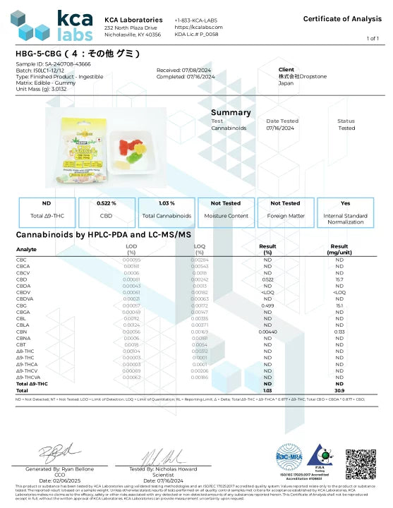 2024年12月12日施行の大麻取締法改正に伴うTHC残留限度値をクリア。